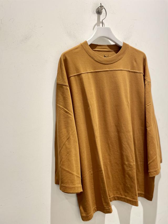 blurhms ROOTSTOCKとの別注、ゆとりのあるリラックスパターンのフットボールT。