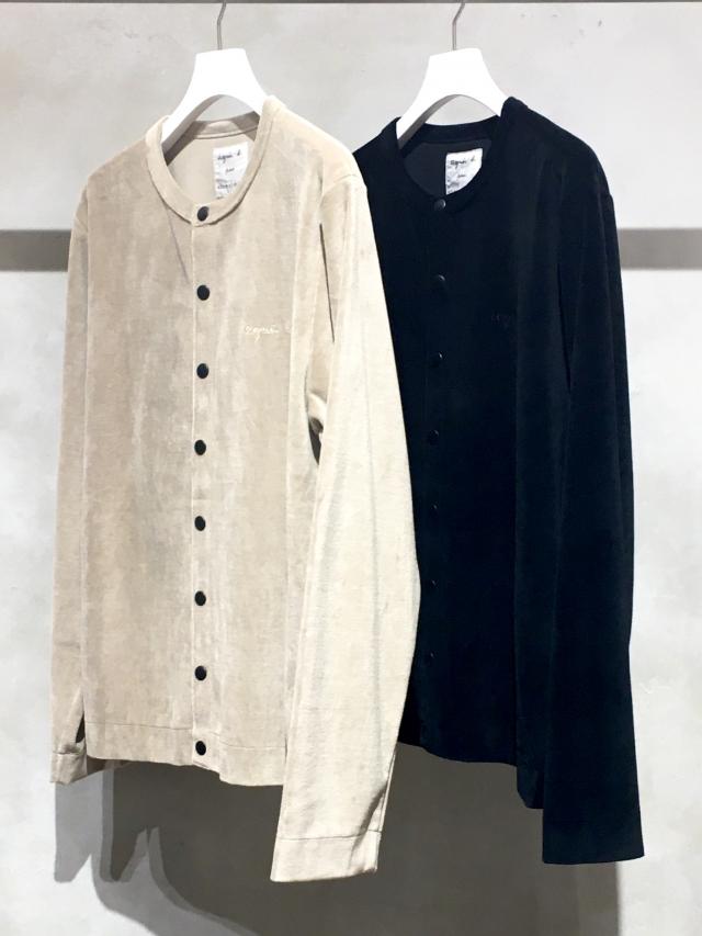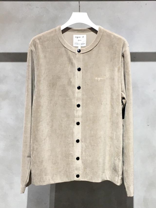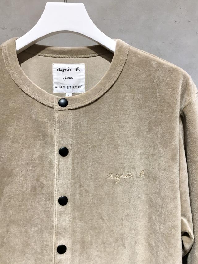 agnes b.の代表作のカーディガンプレッションをベースに、しなやかなベロア素材の使用、アダムエロペのオリジナルパターンの程よくゆとりのあるバランスに、胸元の刺繍ロゴがアクセントとなります。