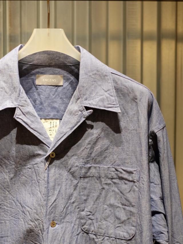 ENCENS CHAMBRAY OPEN COLLAR SHIRT