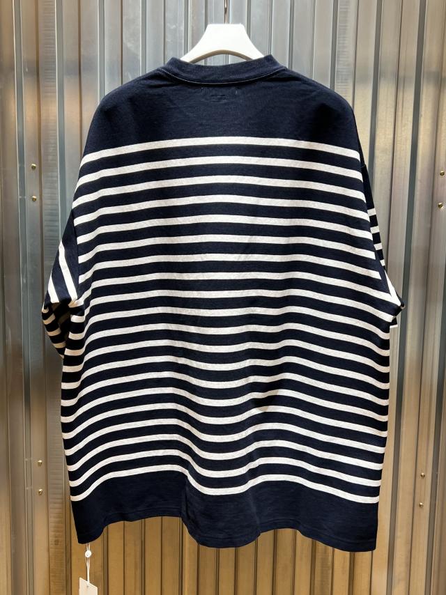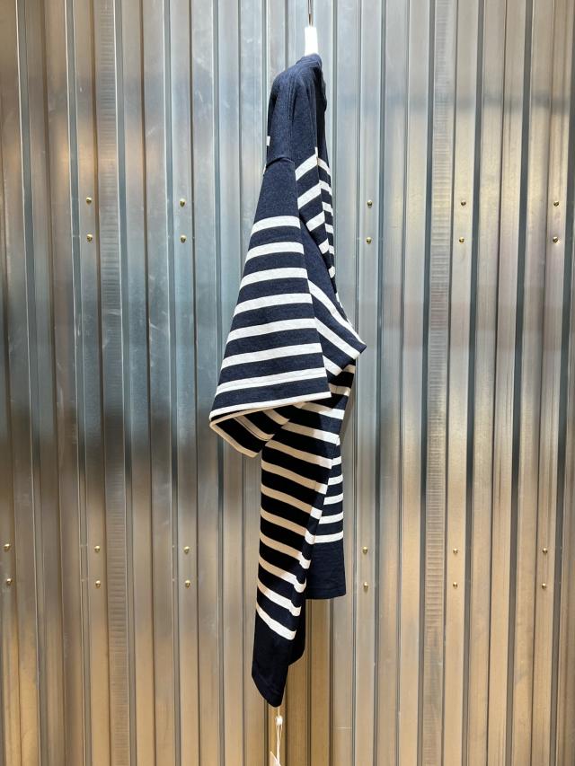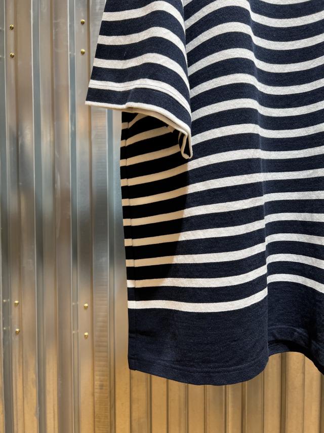 インラインでもあった芯まで浸透させない先染めの糸を使用したバスクTシャツです。