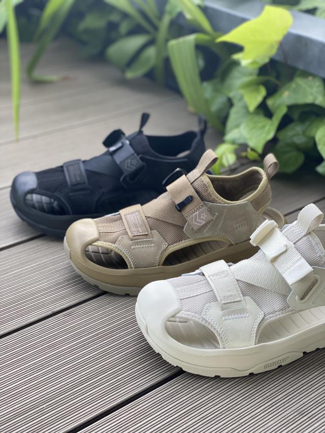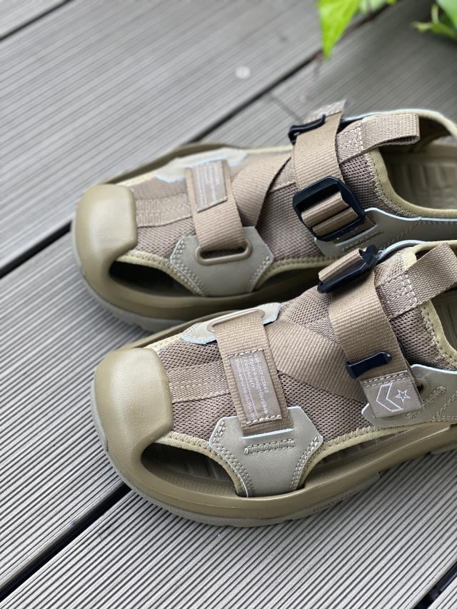 フィット感の調整が可能なZ字に配したベルトを採用した水陸両用サンダル、ボリュームあるアウトソールとシンプルなミリタリーカラーが印象的なデザインです。