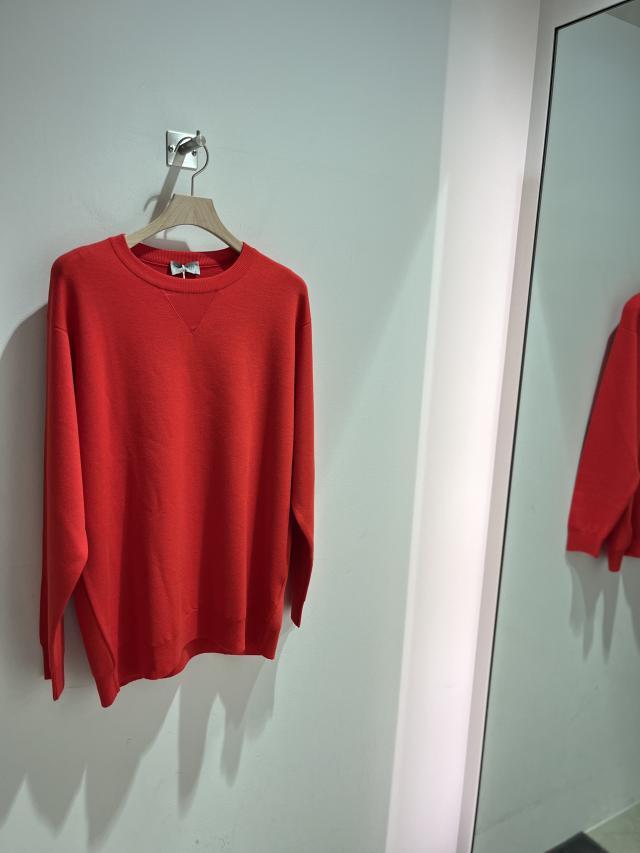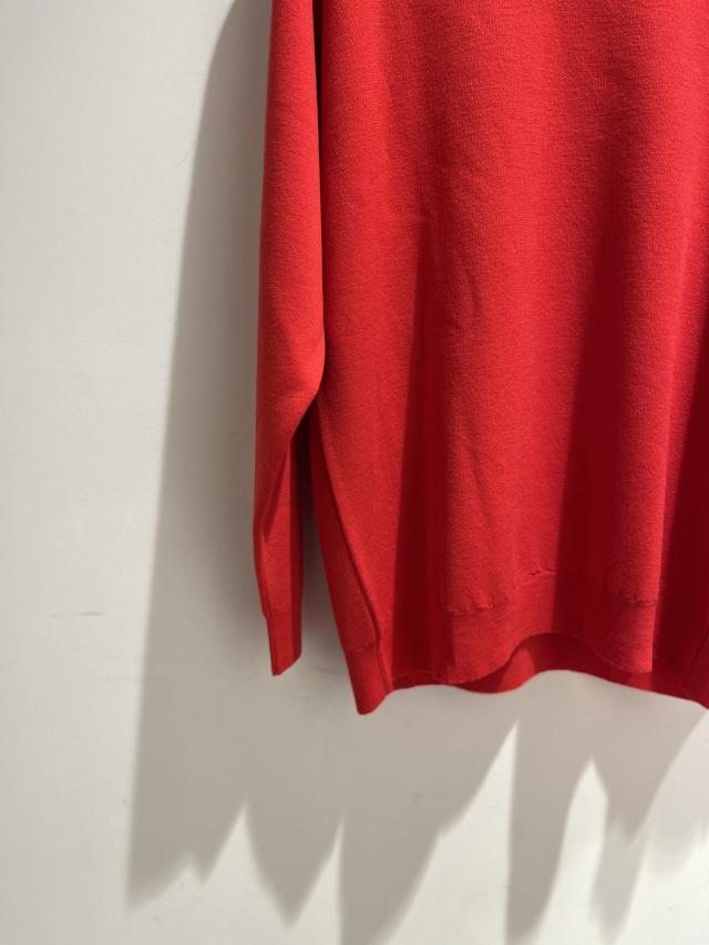 今回の別注は、30G/Wジャガード編みのニット製品であり、24G編みとは異なる肉厚な素材感に仕上げており、一枚着としても重宝します。
