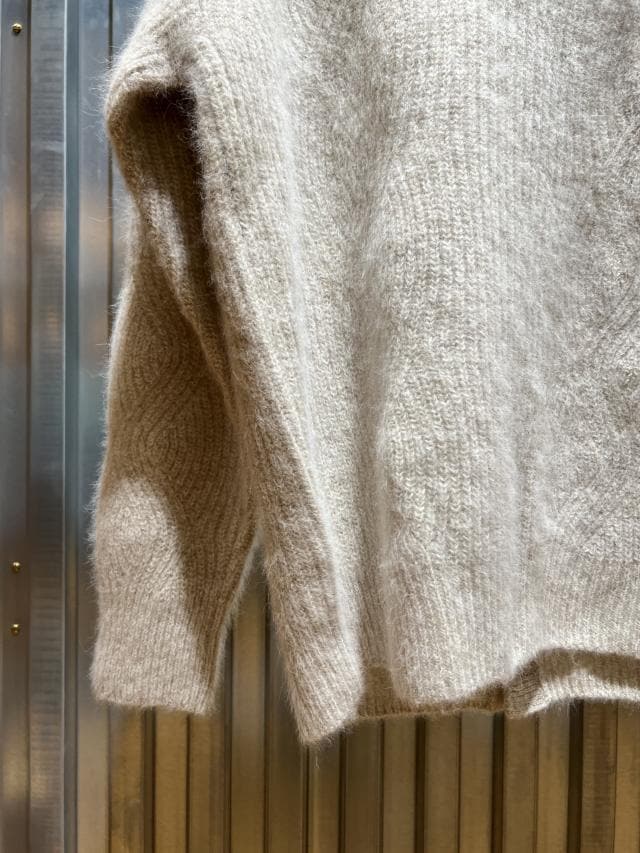 2色のカラー、編み地ともいい表情で、デニムやカーゴ、スラックスと万能にスタイリングも楽しめそうです!
