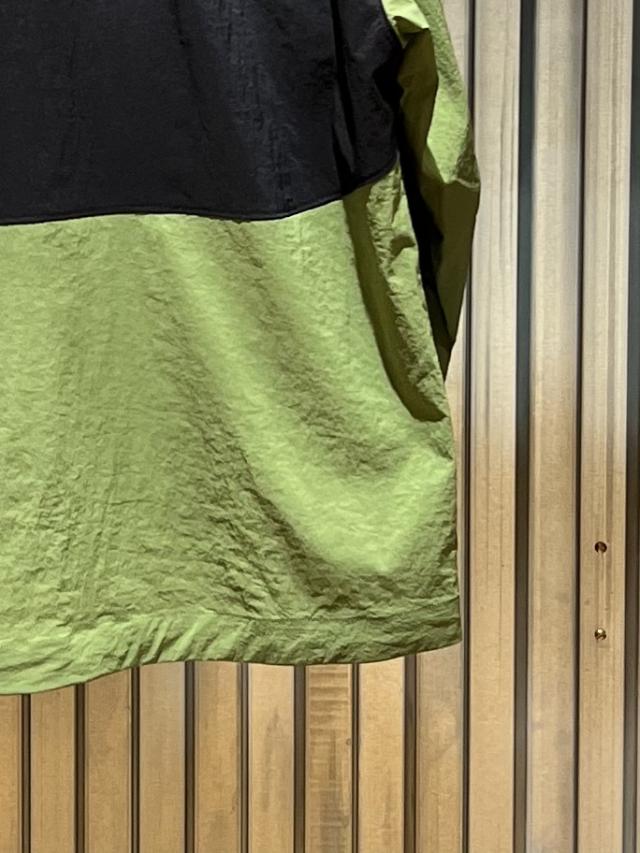 ワッシャー感のある軽量撥水ナイロンストレッチ素材、フロントファスナー部のフラップ、フロントポケットのフラシ仕様に、適度なオーバーサイズバランスと配色使いでのモダンな印象に仕上がっています!