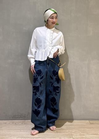 ショルダーのコードを結んで長さ調整ができる仕様、スクエアの形状もあり、モダンでミニマムな印象がいい雰囲気です!