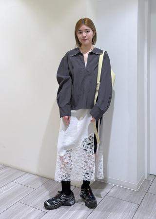 23AWシーズンに大人気だったトラックパンツを、今シーズンは春らしいアイボリーとネイビーのバイカラーで制作。