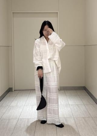 ウール混がめずらしいレースのトップスでボタン前後ろどちらでも着られるアイテムなのでその日の雰囲気に合わせて着回せます♪