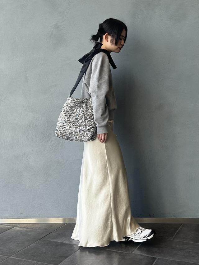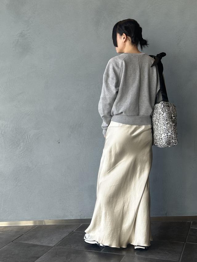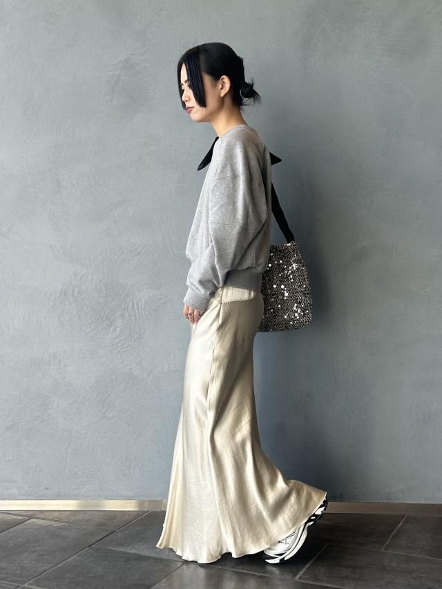 程よいハリがあり、フォルムが特徴的。肩はふんわりしていますが、手首にかけて細くなっているのでたくしあげた時のニュアンス感が素敵。シンプルながらもモードに決まる1着です。
