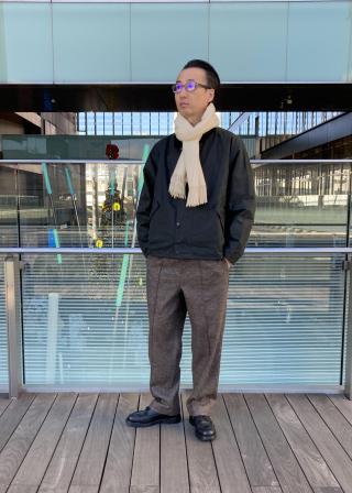 ドレープ感あるウエスタンシャツ。ドレッシーながらもどこかモードな雰囲気。