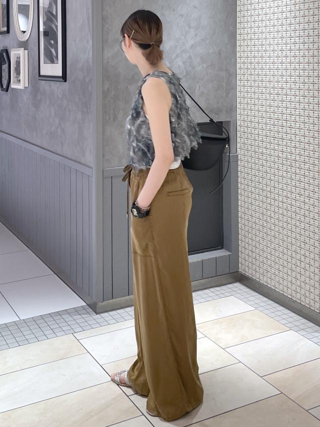 ウエストゴムで生地も薄めでサラッとしていて着やすいアイテムです!