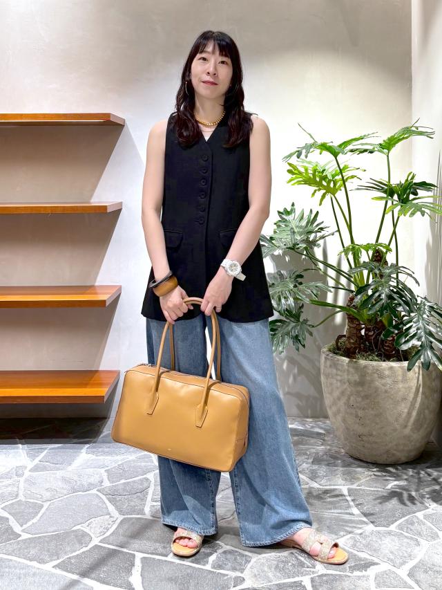 シルエットが綺麗なリネンジレは、ノースリーブで着てもTEEシャツをインナーに入れても大人っぽく着れます◎