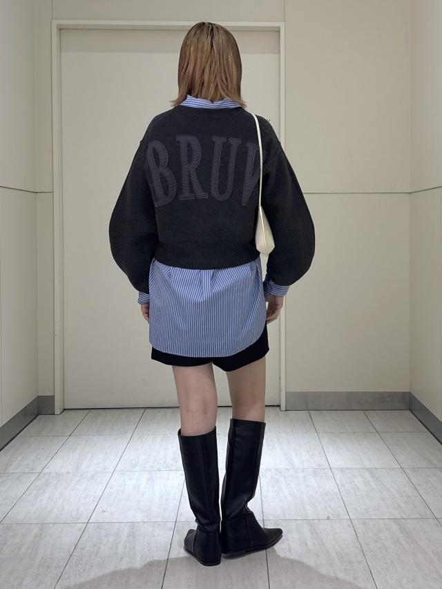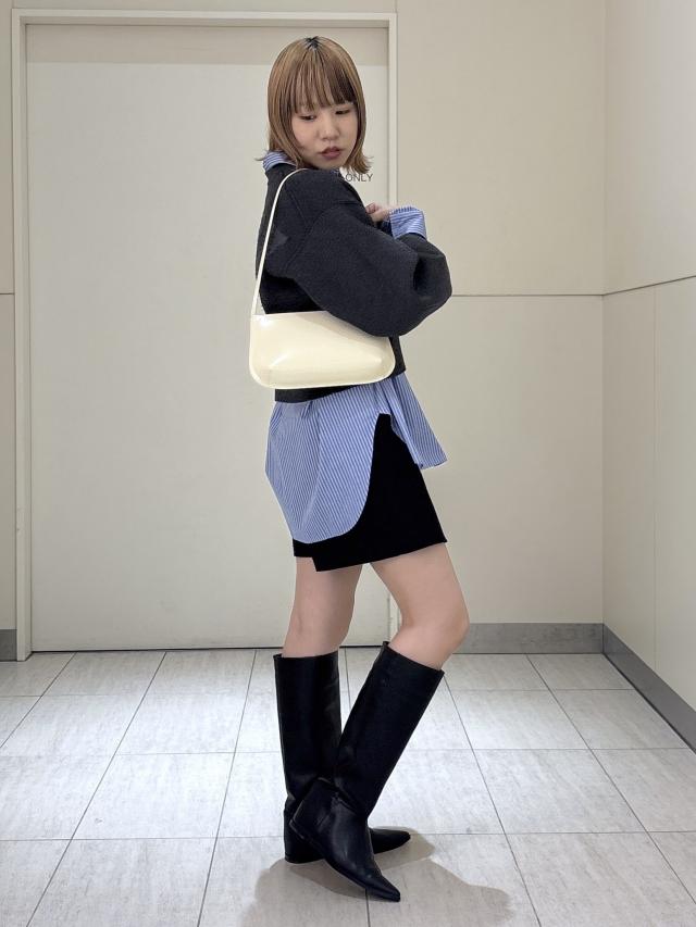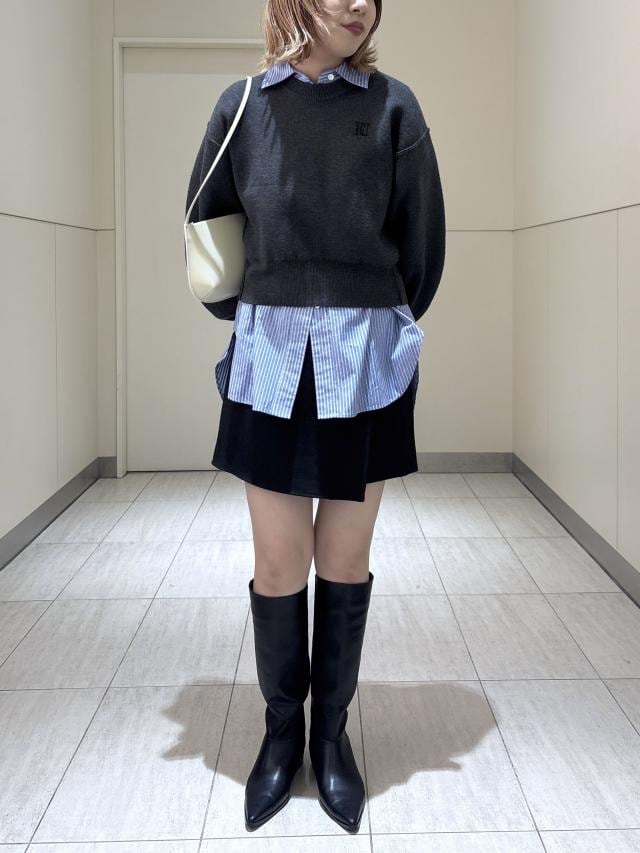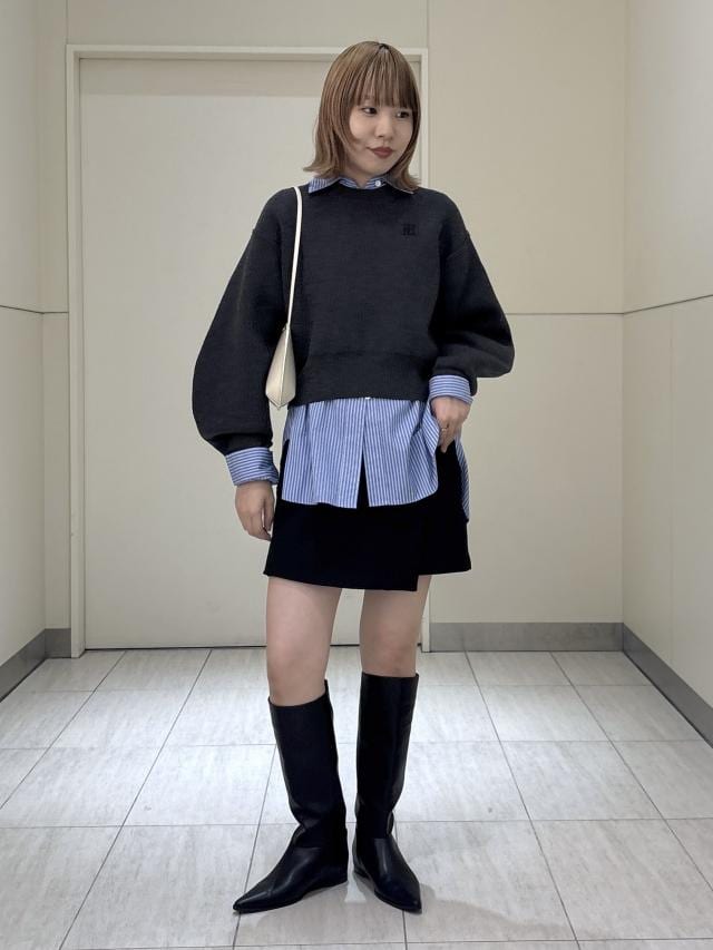 上は少し長めで短めのボトムスでロングブーツ合わせで大人可愛いコーデにしてみました。
