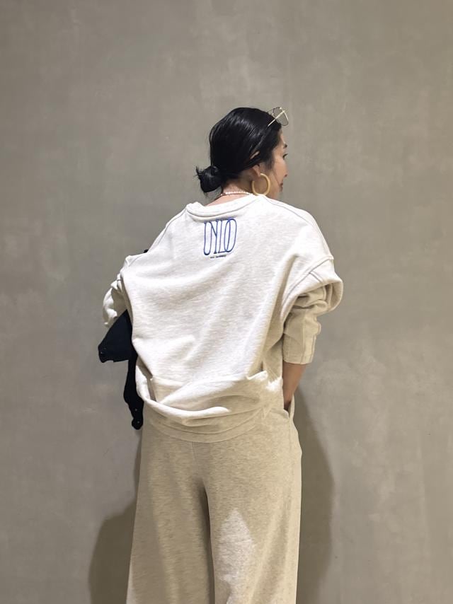 バックフォルムに少し抜け感のあるこちらのスウェットプルオーバー。1枚で着ても程よく上品さが出るのでセットアップできてもおしゃれ見えしますよ!