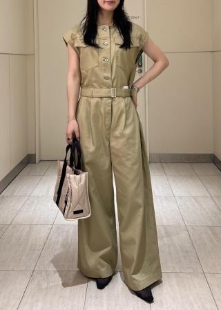 デニムジャケットのディテールを取り入れたシックに決まるオールインワン。