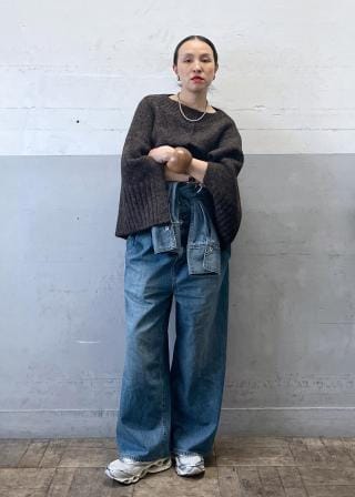オーバーシルエットが魅力的なデニムのジャンプスーツ。
