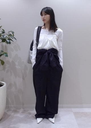着痩せ効果を感じるすっきりとした印象で着用でき、ウエストで結びやすくするために軽めの柔らかい素材感で企画しています。
