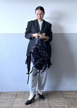 GANNIのロゴが散りばめられたモノグラムのバックパックです。ラバーのロゴパッチもポイント。使い勝手の良い大きさで、大人の女性が持っていてもとても馴染むデザインです。
