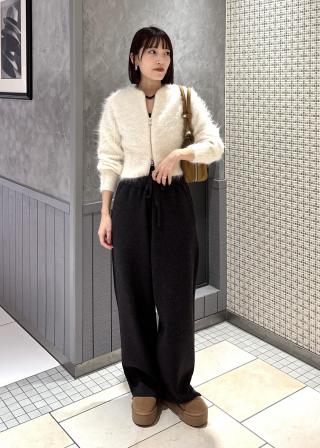 スエード調のフェイクレザーは今シーズンのトレンド素材でスタイリングのアクセントに。