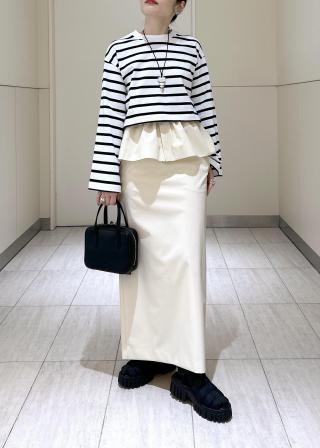 高級感のあるデザインなので、シンプルなコーディネートと合わせるとアクセントに。ワンピースやスカートなどのフェミニンスタイルに、外しで取り入れるのもおすすめ。