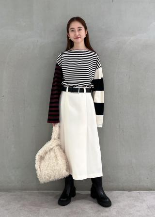 黒のスタイリングが多いので、白のフリフリ素材でパッと華やかなポイントになります。サイズ感もちょうどよく、内ポケットもふたつ付いているのが嬉しいです。