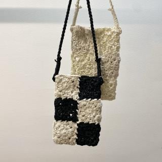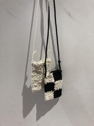 コットン糸とサテンリボンをハンドクラフトで丁寧に仕立てた、スマートフォンが入るサイズのミニポシェット。ナチュラルな素材なので涼し気な雰囲気があり、薄手でシンプルな装いが増えていく季節のコーディネートポイントにもおすすめ。ショルダー紐は少し長めに設定しているため、結ぶことでお好みの長さに調整が可能。近場への外出や旅行のサブバッグとしてもおすすめのアイテム。