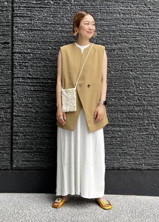 ワンピースに合わせてアクセサリー感覚でさらっと取り入れ、抜け感をプラスしたスタイルがおすすめ。トートバッグなどを一緒に合わせて持ったスタイルもぜひ。