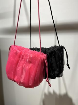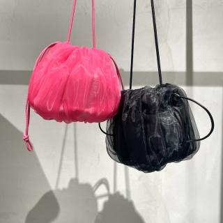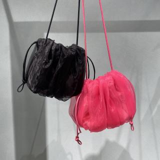 軽さと抜け感のあるシアー素材が魅力の、春夏らしい季節を感じられる巾着バッグ。生地をふんだんに使用し、ふんわりとボリュームを出した、存在感のあるデザインが魅力。底面をしっかりさせることで、重さのある荷物を入れてもきれいなフォルムを維持できる仕様に仕上げているのもこだわりのポイント。