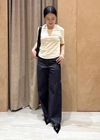加工感のある光沢のフェイクレザーが今シーズンらしいトレンド感をプラス。