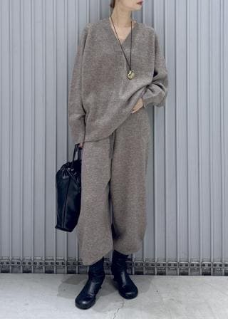 トレンドのスエード調の素材を少しモードなフォルムに落とし込んだミドルサイズ巾着バッグ。