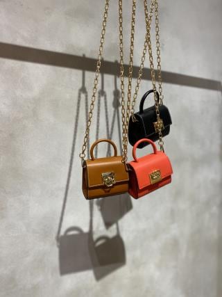 ヴィンテージやクラシカルなど、今季のムードを取り入れたチェーンバッグ。オフホワイトの配色ステッチを施し、立体感を演出しているのがこだわりのポイント。バッグ本体の小ぶりなサイズ感と、程よくボリュームのあるボックスチェーンとの絶妙な対比バランスも魅力。