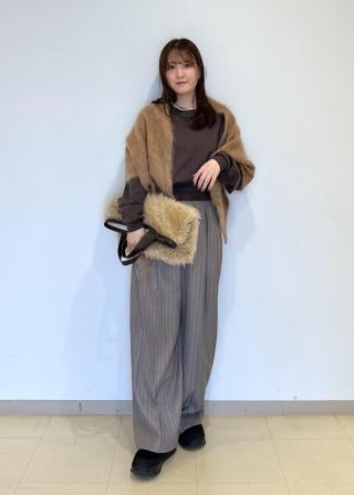同素材のブラッシュカシミアVネックカーディガン(品番:GAK25210)の上にぐるっと巻いたりセットでの着用もおすすめ。