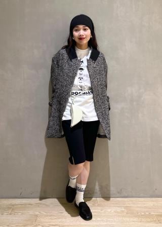 カジュアルでもピアスなどアクセサリーを引き立て顔周りをモードで華やかな印象に。