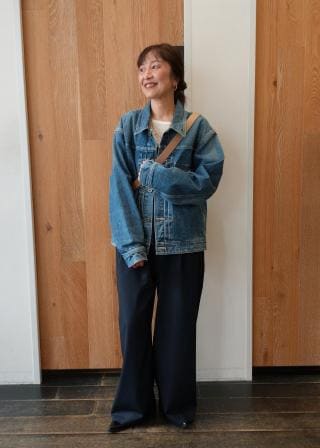 程よくゆとりがあり、オーバーサイズので、インナーにスウェットも着れます。