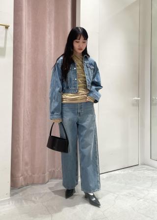 Gジャン×デニムパンツorチノパンのセットアップスタイルには、女性らしく華奢なヒールがおすすめ。ショートGジャンは、ボリュームスカートやリーンスカートなどともバランスの取りやすいアイテム。