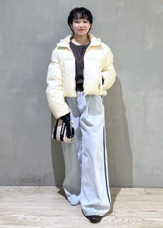 極力少ないダウンステッチ幅でスッキリした印象の腰上丈のショートダウン。