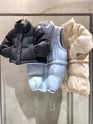 ハーフ丈で着用する際は、細身のパンツにロングブーツ合わせ、ショート丈で着用する際は、裾から同色や差し色のニットが見えるようにしたパンツスタイルやタイトスカート合わせがおすすめ。ニットワンピースやニットセットアップの上に、ショート丈のダウンベストとしてさっと羽織るスタイルも素敵なのでぜひ。