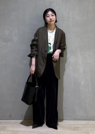 ジャケットとして着用するのはもちろんの事、季節が進むと薄手のコートや、バサっとしたカーディガンにインして、インナーダウンとして着用していただくのがおすすめ。