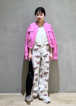 パンツからスカートまでボトムを選ばないアイテム。デニムパンツ合わせでカジュアルに、デザインスカート合わせてモードに着こなすのもおすすめ。