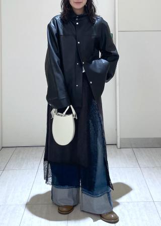 レザーライクな質感ながら軽さと柔らかさがとても着やすいです!肌馴染みもよく程よいキナリ感のカラーがカラーコーデとも相性◎です!