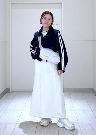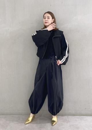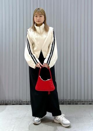 シンプルなリーンシルエットのワンピースやスカート、大人っぽいワイドパンツが好相性。バサっとラフに羽織って、ブルゾンを際立たせて着用していただくのがおすすめ。