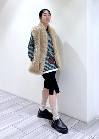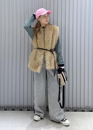 《セットアイテム》テディベアのようなボリューム感のあるモヘアファーが魅力。レザーベルトで女性らしいメリハリを演出し、秋冬を華やかにしてくれる大人のファージレ