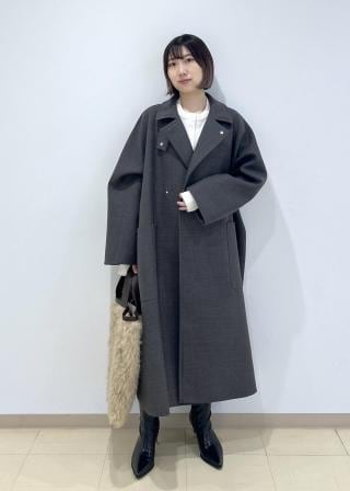 大きめのポケットや、パターンにこだわったばさっとしたシルエット等、こなれ感のあるコート。