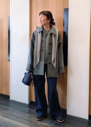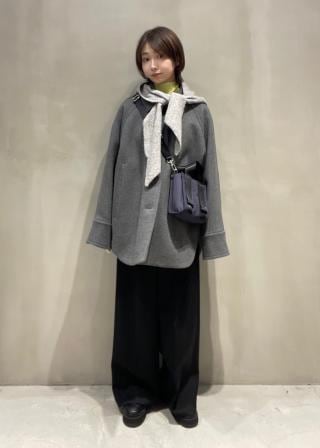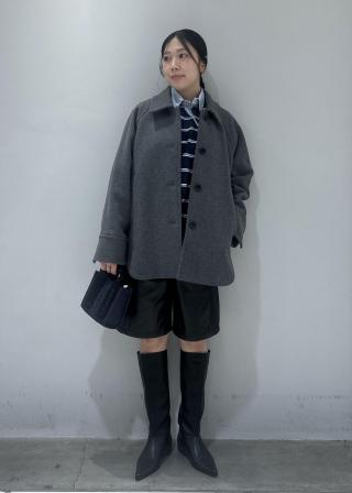 上質なウールの素材感ですが、シャツジャケットのような気軽に羽織れるデザイン。幅広いボトムに合わせやすいミドル丈で、活躍度合いが高そうです。