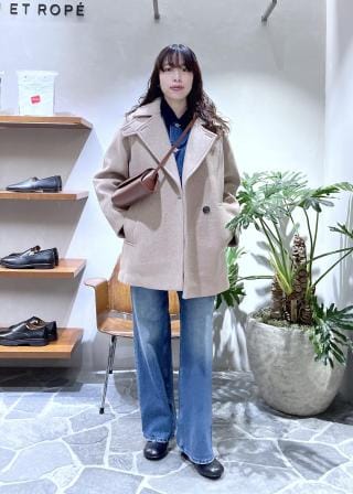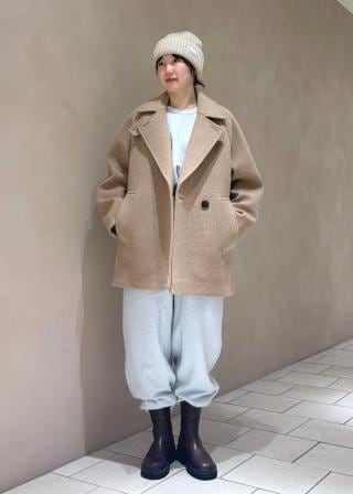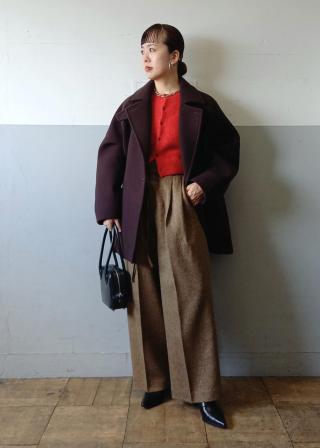 ウールコート特有の硬さは無く、ボンディング素材で伸縮性があり動きやすいです◎中にも厚手のニットやジャケットの上にそのまま着用することも出来、オンオフで着用可能です☺︎