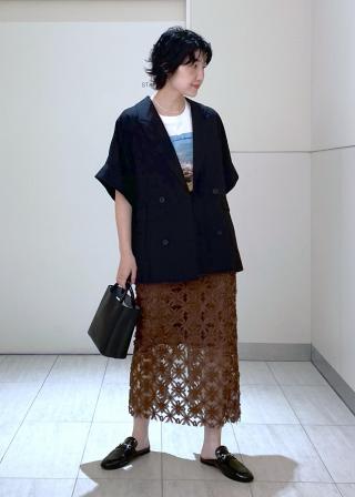 インナーに、ベアトップやタンクトップを合わせてヘルシーな着こなしに仕上げ、ボトムにリーンシルエットのスカートを合わせるのがおすすめ。スカートはもちろん、パンツスタイルにもワンピースに合わせても素敵なので、様々に楽しんで。