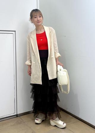タンクトップやキャミソールにスラックスパンツやスカートを合わせたスタイルに、さっと羽織るスタイリングがおすすめ。