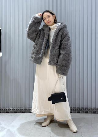 今季のトレンドでもあるロングブーツとのレイヤードがおすすめ。クシュクシュと縮めて、ミュールやローファーと合わせるのも新鮮さがあり素敵なのでぜひ。