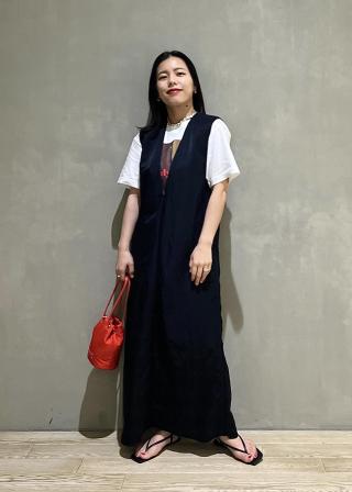 セットでの着用はもちろん、ワンピースは、キャミソールやTシャツなどに合わせてジャンパードレスとしてもぜひ。キャミソールの下にTシャツを合わせてたデニムスタイルで、カジュアルな着こなしもぜひ。