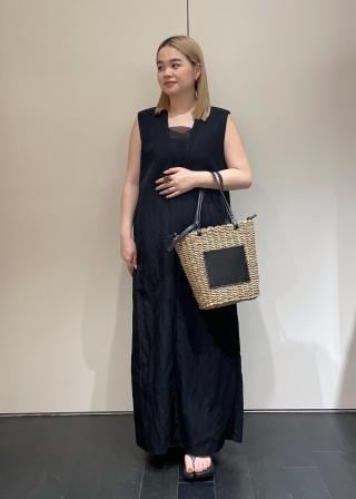 リーンシルエットのロングワンピースと、同素材のキャミソールのセットアイテム。
