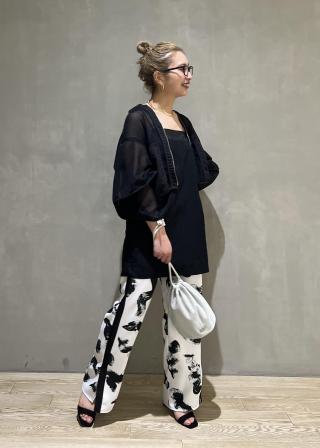 キャミソール:胸元をミニマルな直線ラインに仕上げてくれるキャミソール。上端に透けるオーガンジーを施しているのがポイント。